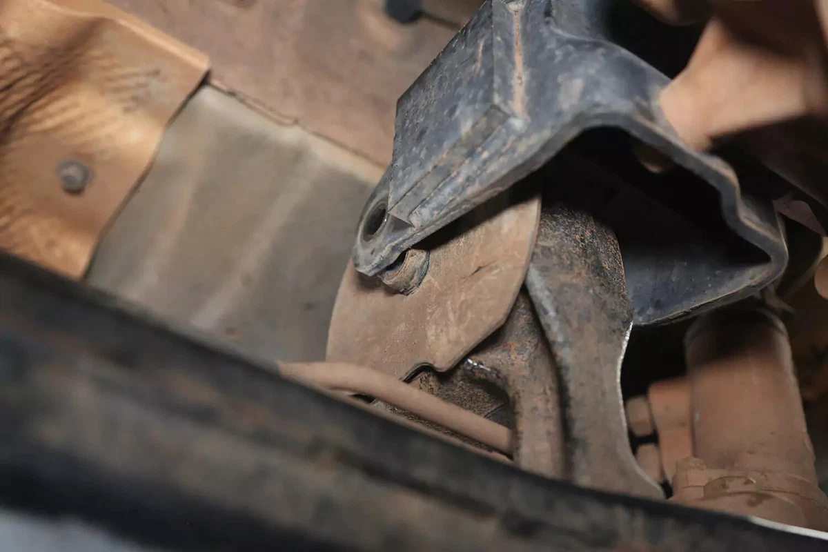 На нашем переднеприводном демонстрационном автомобиле крепление коробки передач расположено за коробкой передач на переднем подрамнике. Если у вас автомобиль с полным, полным или задним приводом, крепление, вероятно, находится в самой задней части трансмиссии, почти по центру под автомобилем, между трансмиссией и поперечиной.