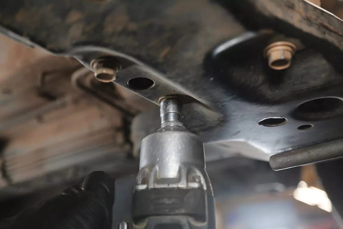 Ослабьте болты крепления коробки передач. Оставьте их пока на месте.